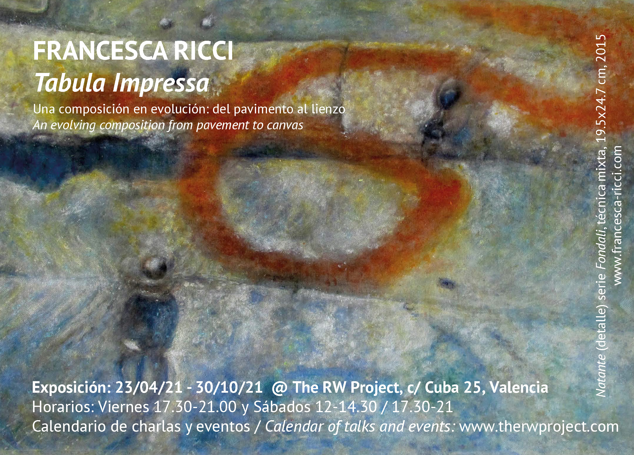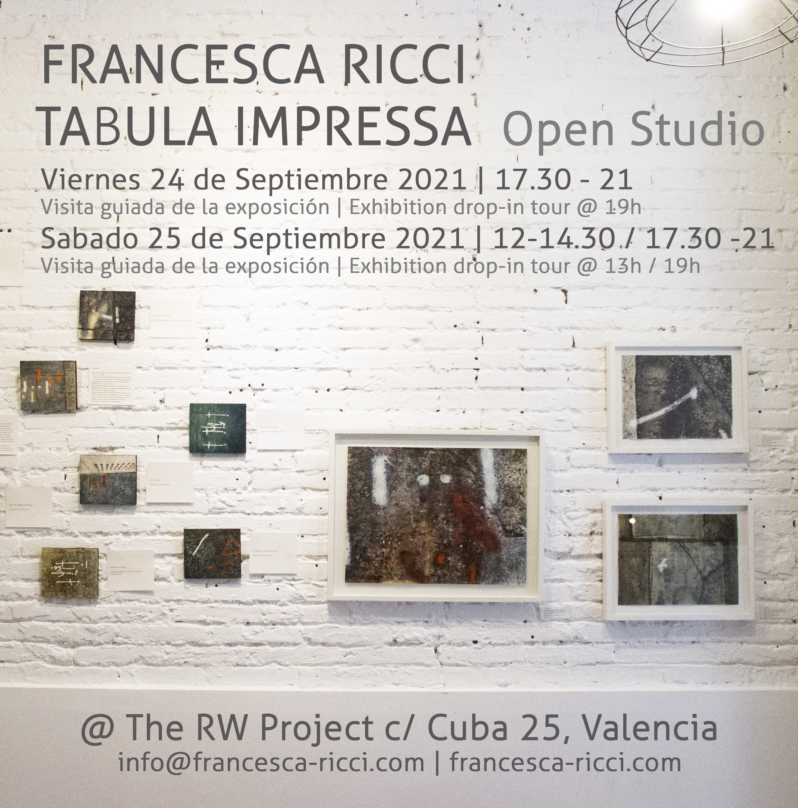 The RW Project presenta Tabula Impressa, una instalación de la artista Francesca Ricci. La exposición consta de trabajos en técnica mixta sobre papel, panel, lienzo y textil, y una obra en vídeo. Todas las obras son parte de un proyecto multidisciplinario y en constante desarrollo surgido en el año 2011 como un emprendimiento conjunto de la artista Francesca Ricci y el escritor Kiril Bozhinov.