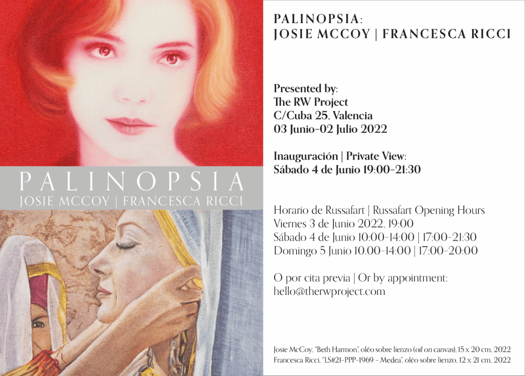 Como parte de Russafart 2022, The RW Project presenta “Palinopsia”, una selección de trabajos recientes de la pintora británica Josie McCoy y la artista italianaFrancesca Ricci, ambas residentes en Valencia.