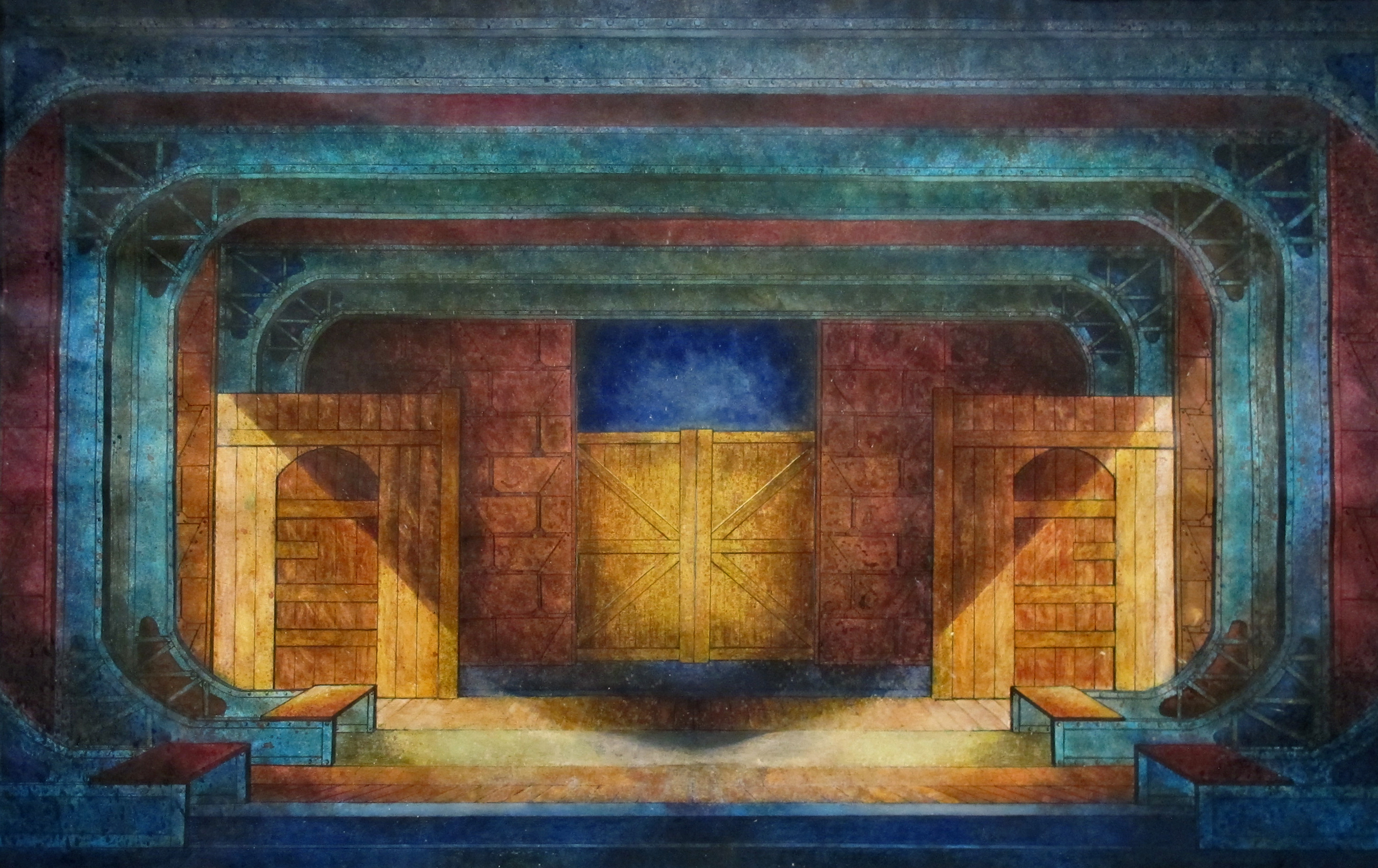 While I was working on the college assignments for Pirandello’s Six Characters, Shakespeare’s Macbeth and Puccini’s La Bohème, I was trying to imagine how my visions could be rendered on large scale. But I also realised that this initial stage of visualising was my favourite part of the process and that influenced me later when I shifted from stage design into making art.
