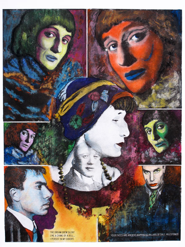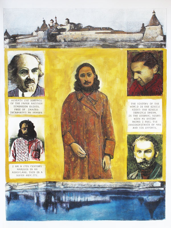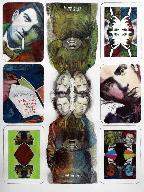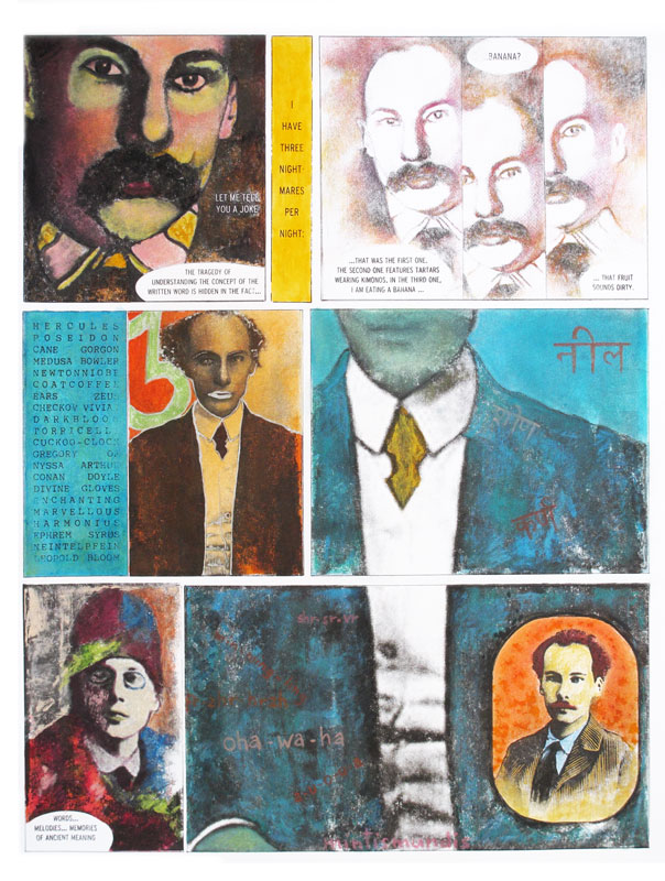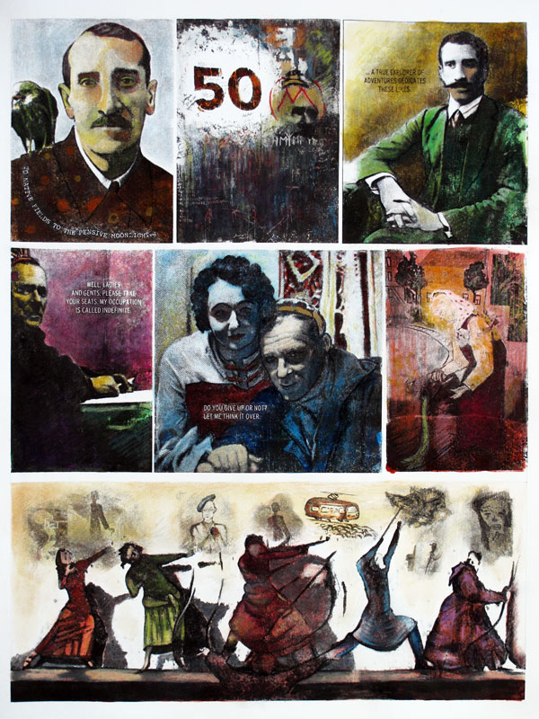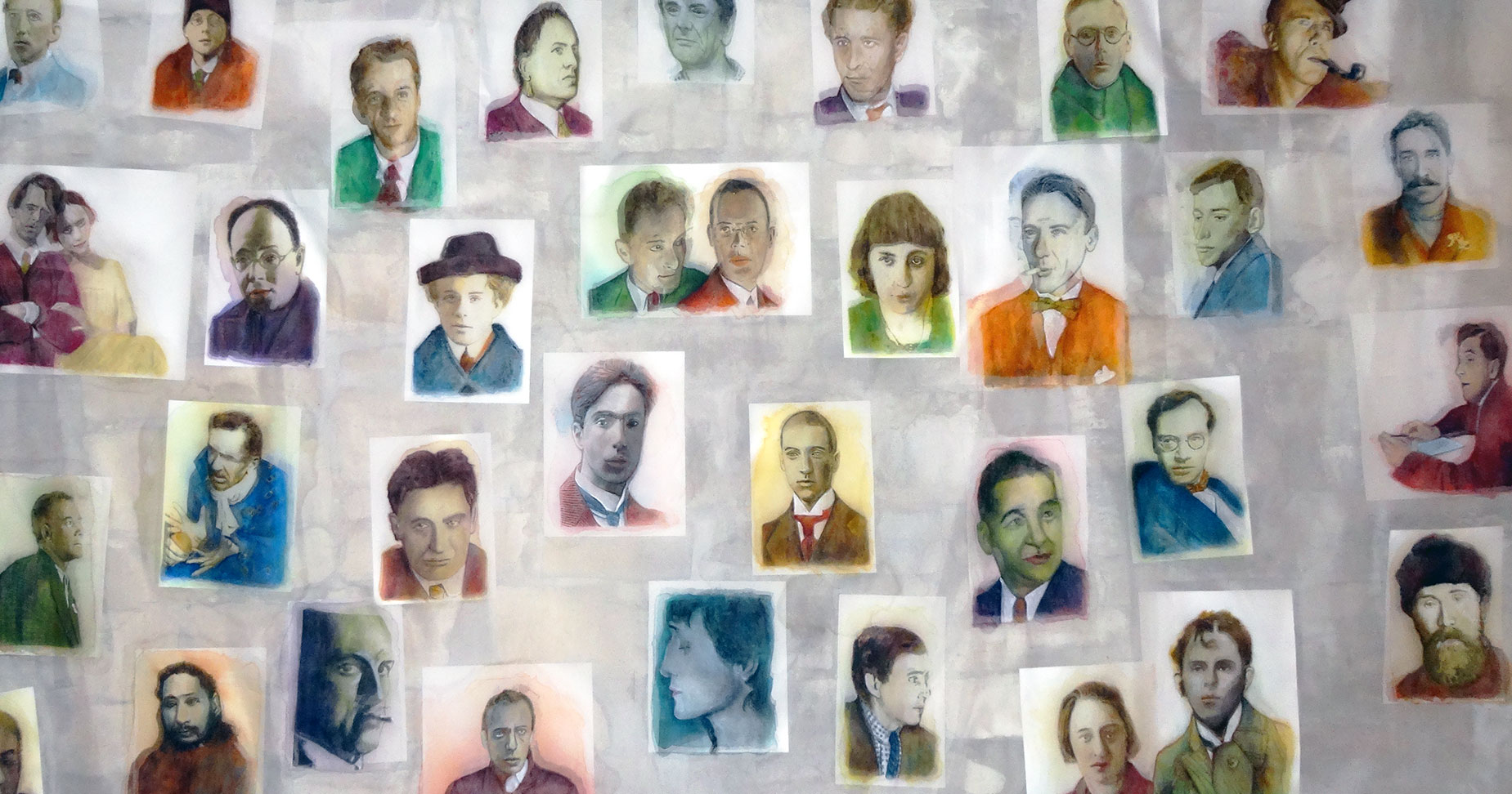 Sixteen storyboards, a collection of pocket-size portraits complemented by fictional autobiographies attempt to ‘translate’ the voices of individual writers or those of a literary group.