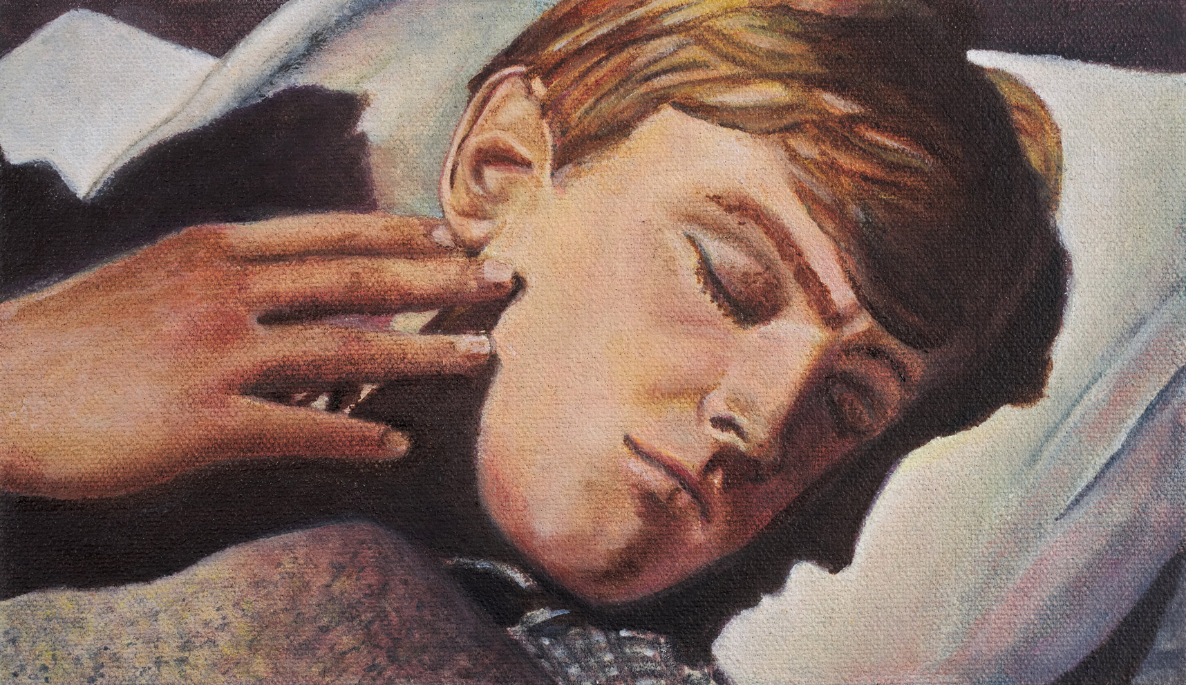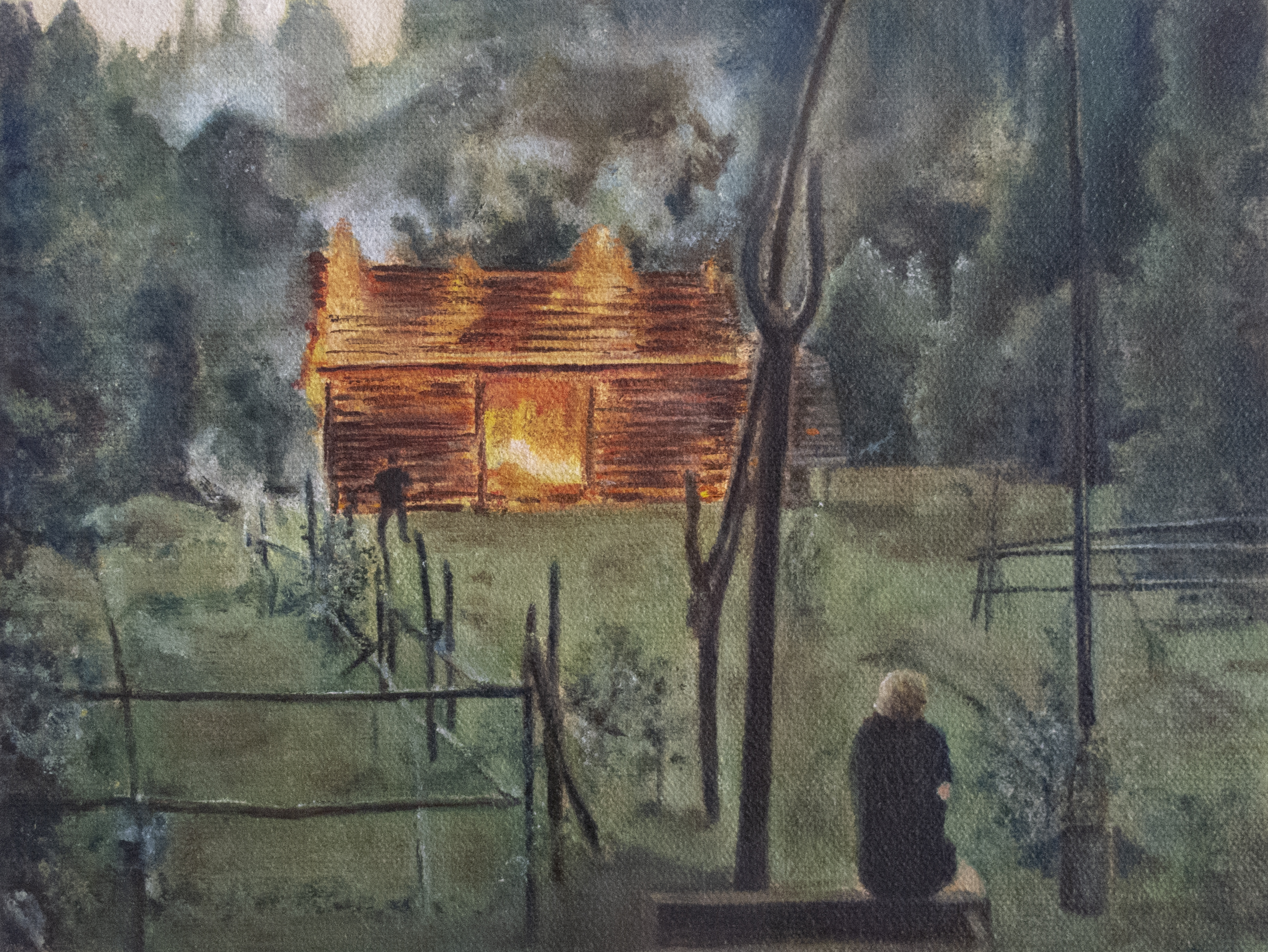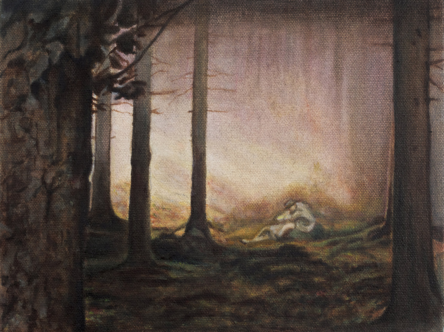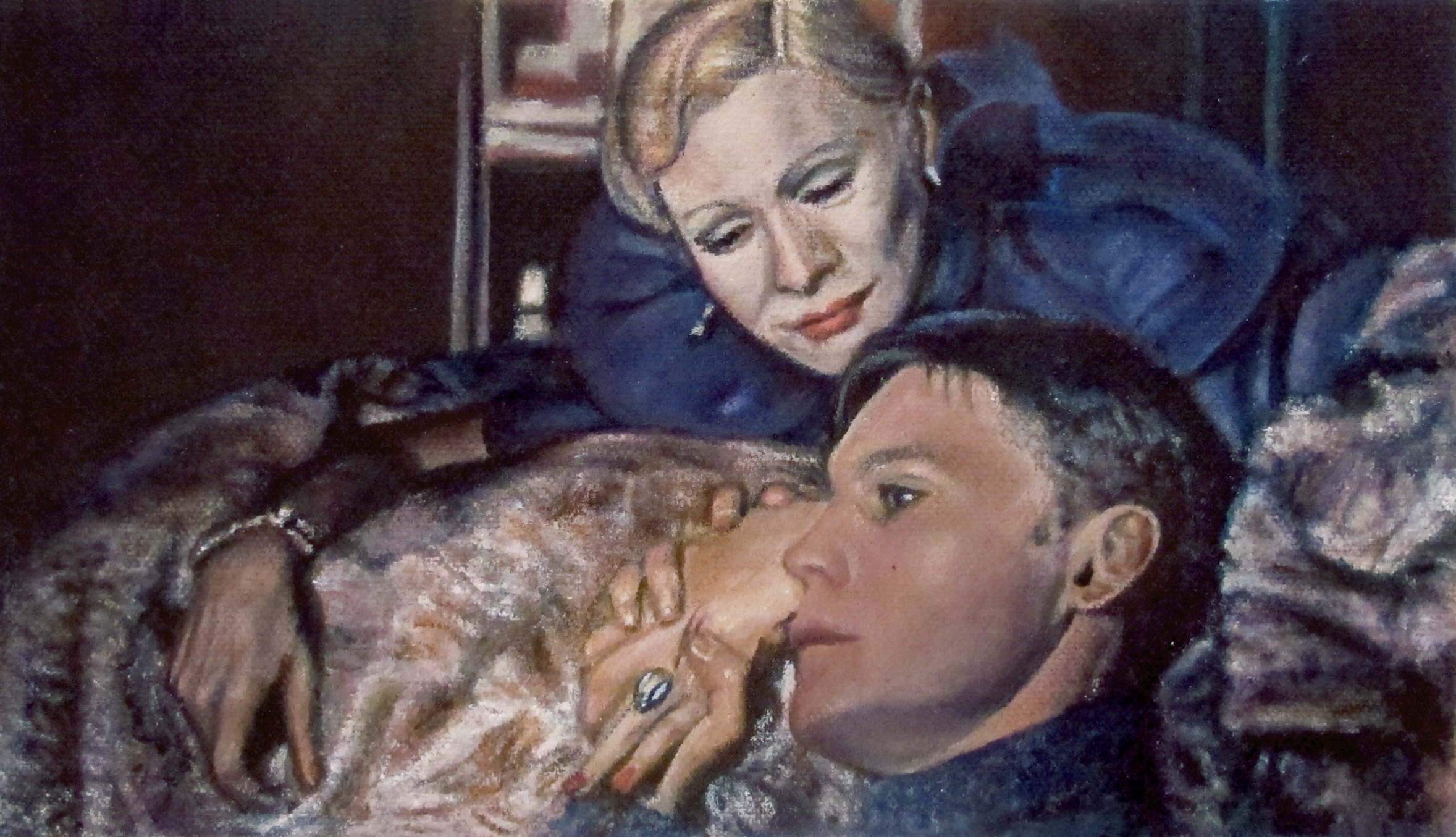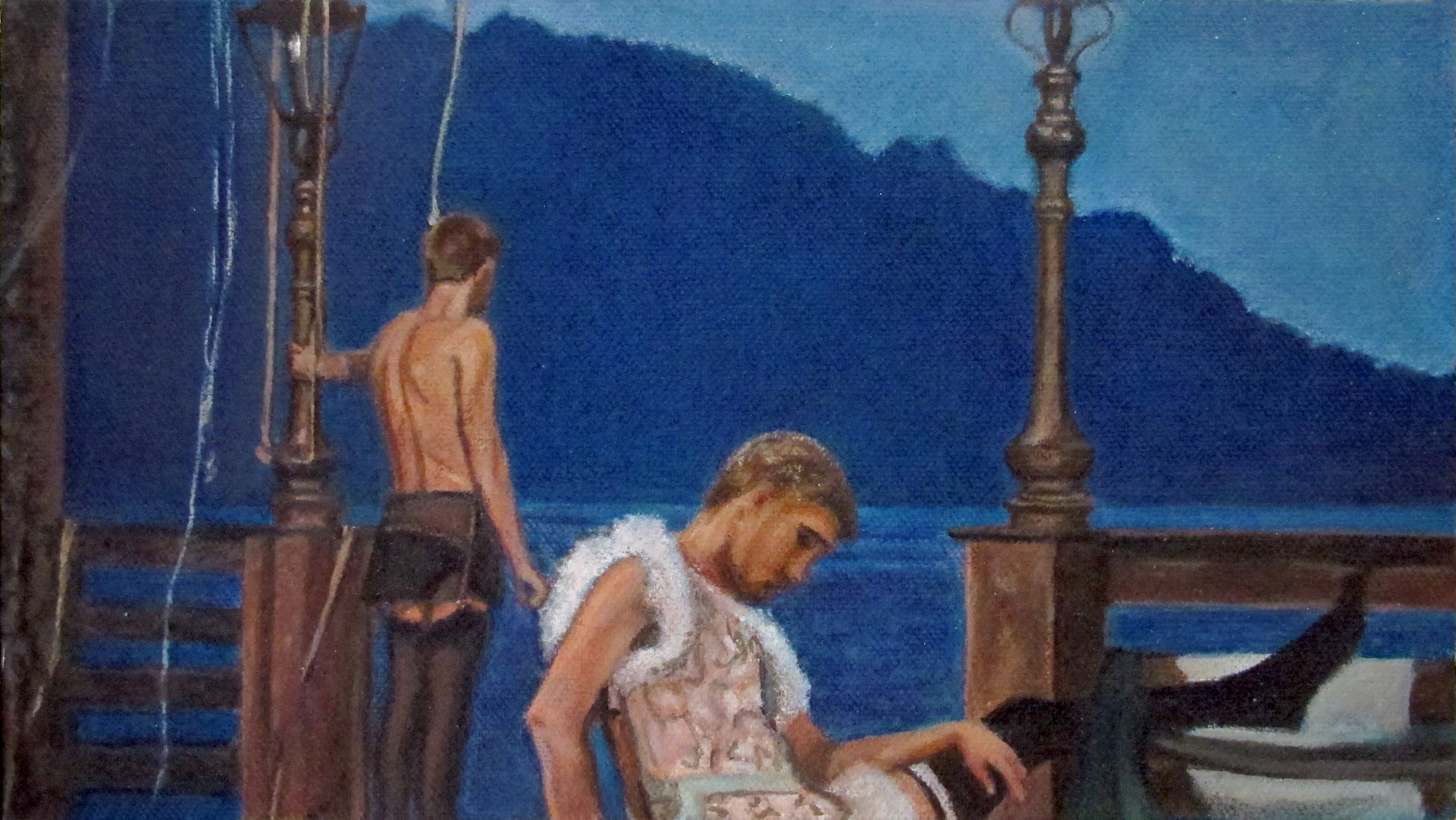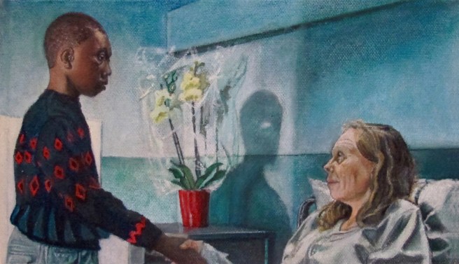 This series pays homage to the cinematography that affected me personally and influenced my vision as an artist. The paintings are stills from some of my favourite films, usually involving two characters or announcing a change of mood or events in the story. The small scale of the works aims to highlight the intimacy of the cinematic experience where the big screen is sized down to be embraced by the viewer and the act of watching becomes a private moment.